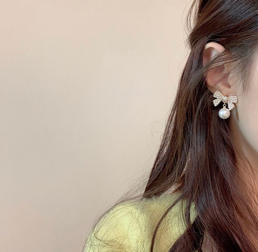 大人気 ピアス レーディス ゴールド パール キラキラ リボン 可愛い 韓国