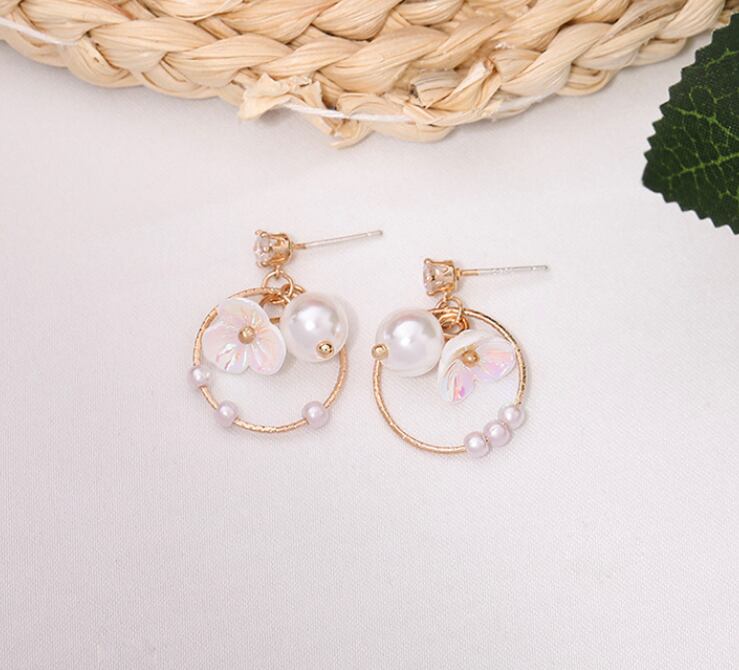 大人気 ピアス ゴールド ジルコニア キラキラ花パール 揺れる サークル 可愛い